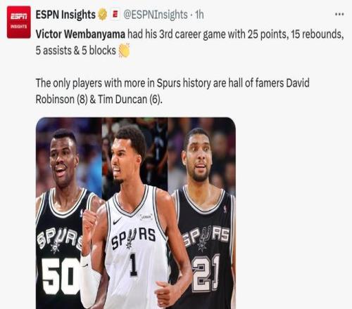 更重要的是,期间年轻的马刺队亮出3大杀招,核心文班亚马持续暴走成为历史首人。